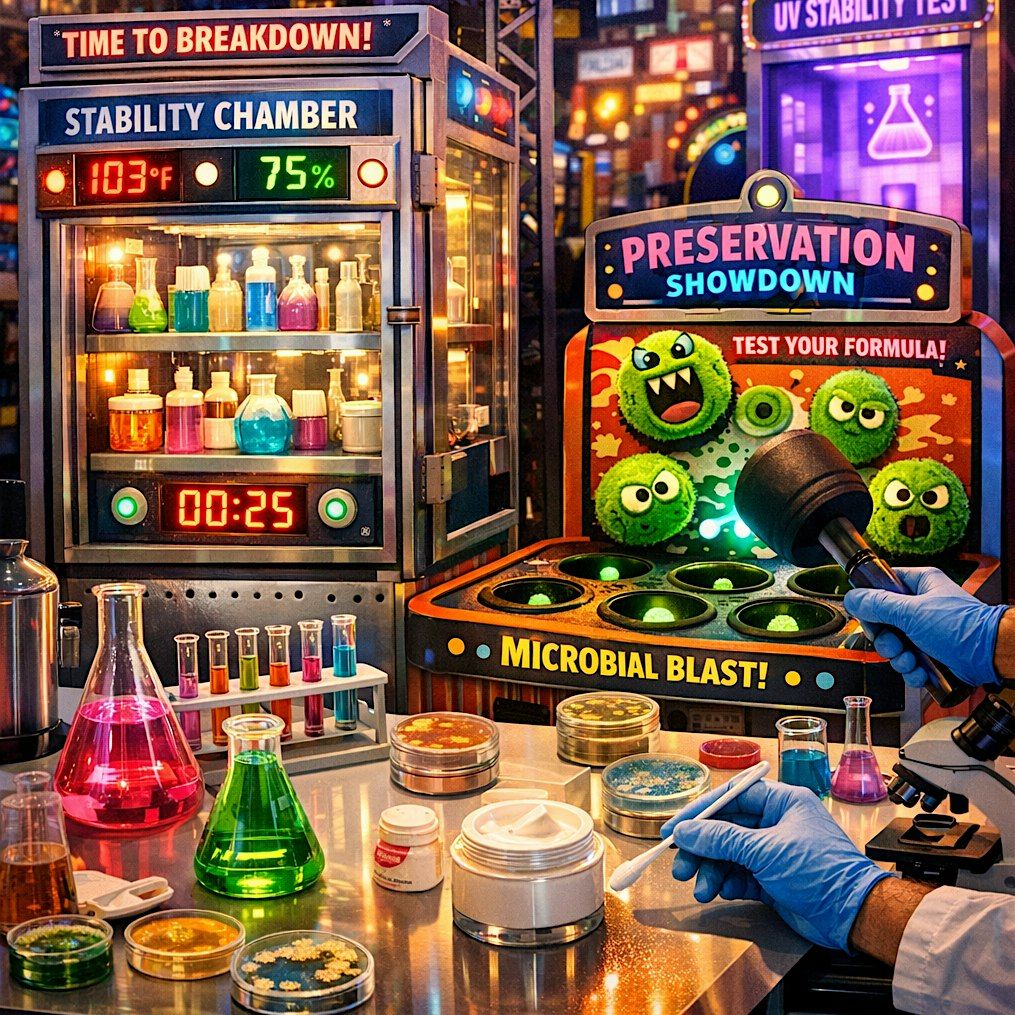 Welcome to our upcoming event focusing on stabilty and preservation in personal care products. Join us at Dave & Buster's in Salt Lake City for presentations by industry leaders, catered lunch, Supplier's Showcase, and our personal care game show!