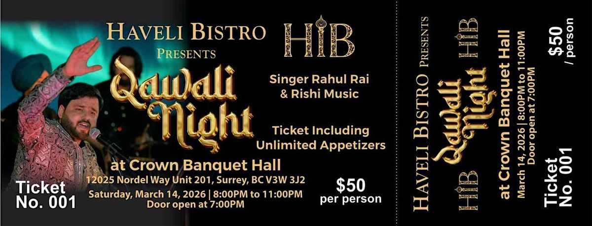 Get ready for an unforgettable evening filled with soul-stirring Qawali performances! Join us in person at the Crown Banquet Hall for a night that celebrates passion, rhythm, and traditional melodies. Bring your friends, tap your feet, and lose yourself in the magic of live music. Don’t miss out on this awesome chance to experience authentic Qawali vibes up close and personal!