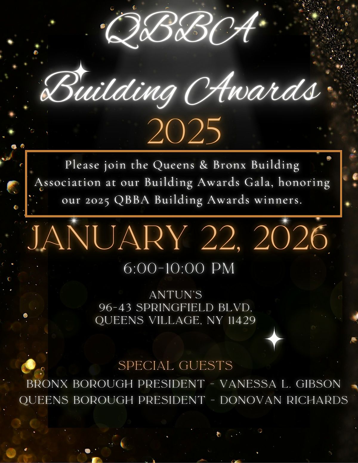 Please join the Queens & Bronx Building Association at our Building Awards Gala, honoring our 2025 QBBA Building Awards winners.