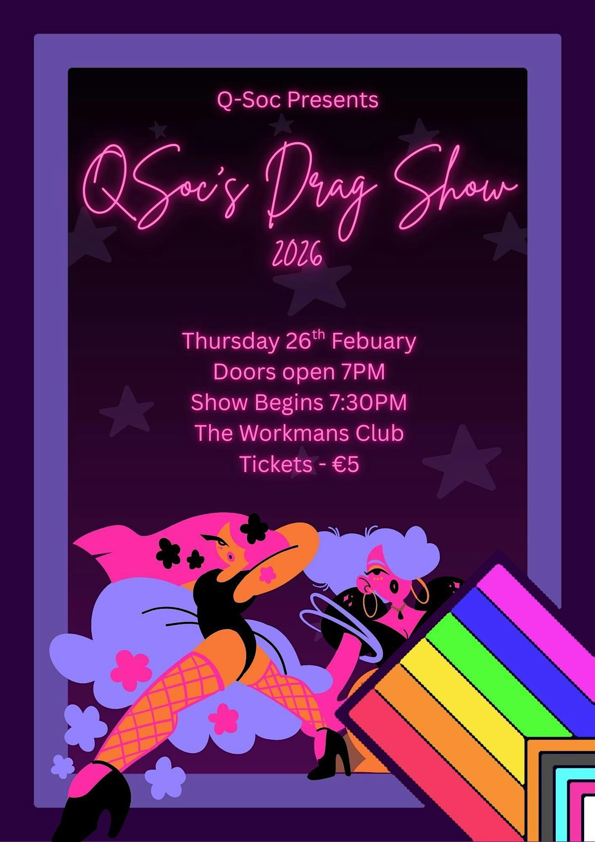QSoc is hosting our annual drag show in the workman's cellar! It's going to be a night full of student acts and talent!