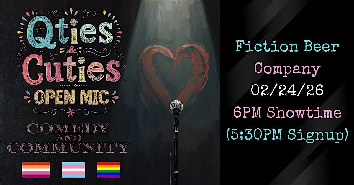 This QTs & Cuties Comedy Series Event will be held at Fiction Beer Company on Tuesday, February 24th, 2026 @ 6PM (5:30PM signup for comics). If this 'trial run' goes well, we would love to bring this back as a regular event! We will also be hosting this series at other venues, both before and after the aforementioned date. So keep your eyes peeled, or follow us on instagram @qts_and_cuties_comedy !!!