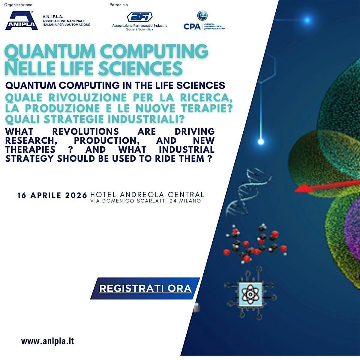 L’incontro vuole esplorare la maturità industriale e gli impatti reali del calcolo quantistico sull’industria farmaceutica del futuro nelle aree quali la ricerca e sviluppo di nuove molecole, l’uso di AI e di Digital Twin per simulazioni di terapie personalizzate, la digitalizzazione della filiera produttiva e l’accelerazione del Time-to-Market di nuovi farmaci in scenari altamente dinamici. Il quantum computing (QCom) è oggi al centro del dibattito di piani strategici e di significativi investimenti industriali grazie alla potenza di calcolo e alle sinergie con applicazioni di AI e ML.