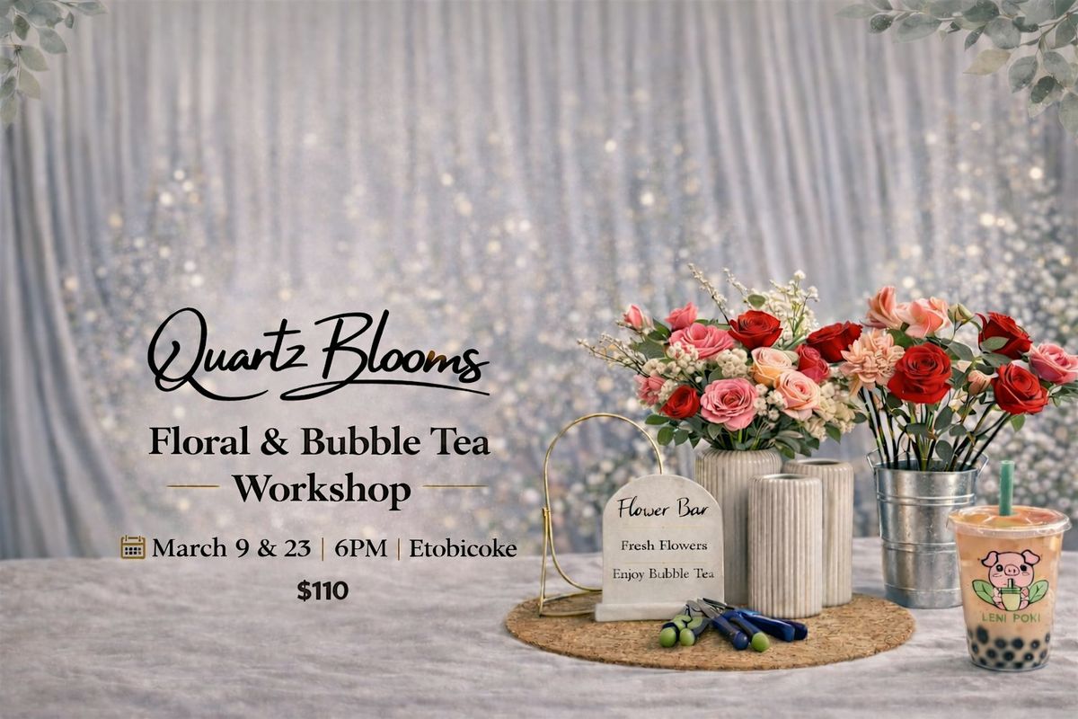 💐 Join Quartz Blooms for a cozy Floral & Bubble Tea Workshop Night in Etobicoke at Leni Poki Bubble Tea.🧋