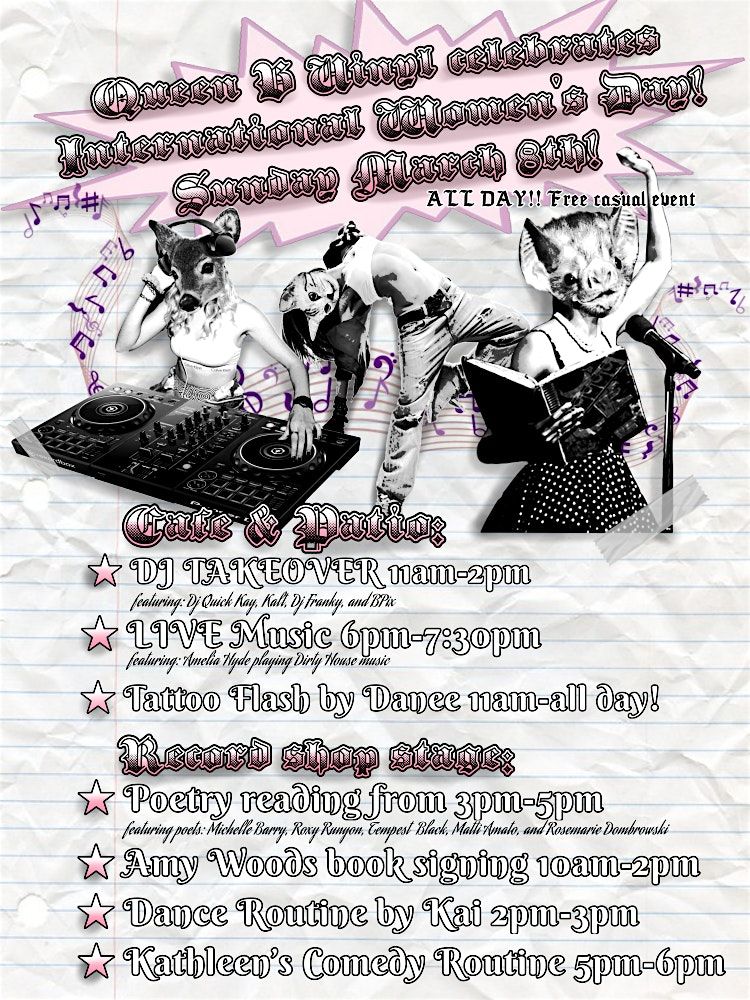 Don't forget to visit the record store side; From paintings, to book signings, poem readings, dancing, and comedy galore! Come see what makes these women so uniquely talented, and share in the love of feminity in any form with your loved ones!