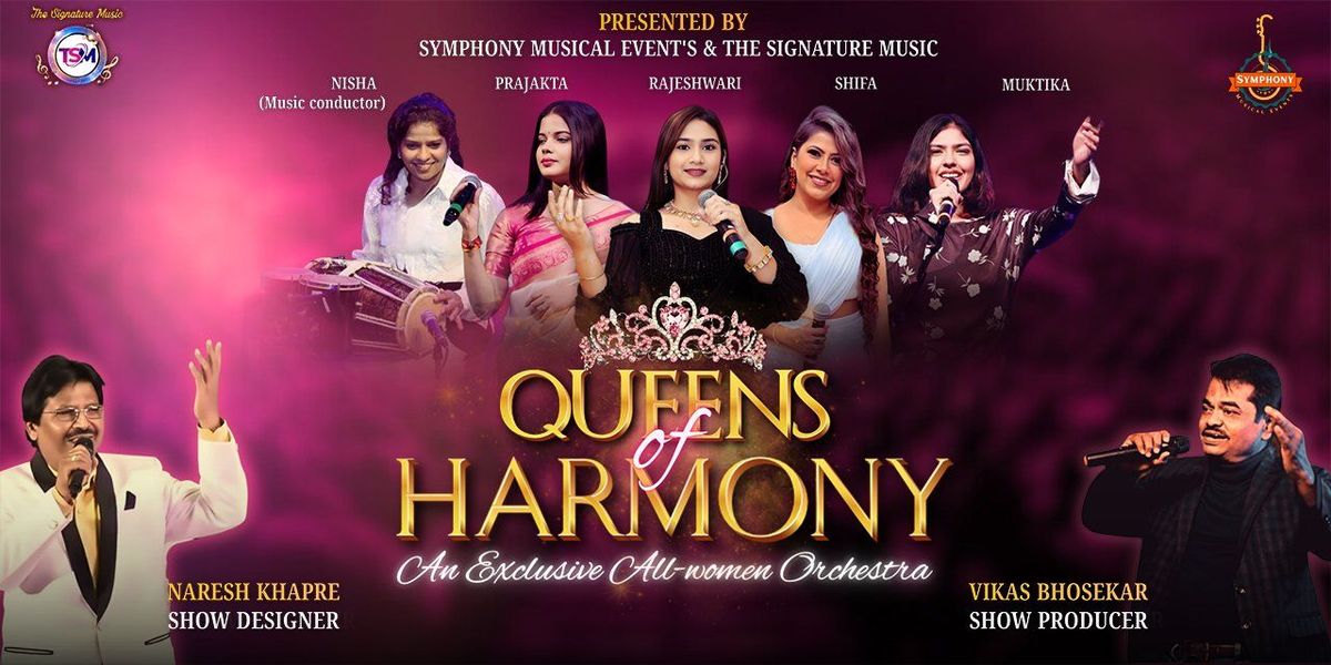 Experience a musical extravaganza like never before! Queens of Harmony is a one-of-a-kind concert that brings together the power, grace, and immense talent of women in the Indian music industry. Breaking the traditional mold, this show features an entirely female lineup—from the powerhouse vocalists to the incredible instrumentalists in the band. It is not just a concert; it is a celebration of rhythm, melody, and the spirit of womanhood.