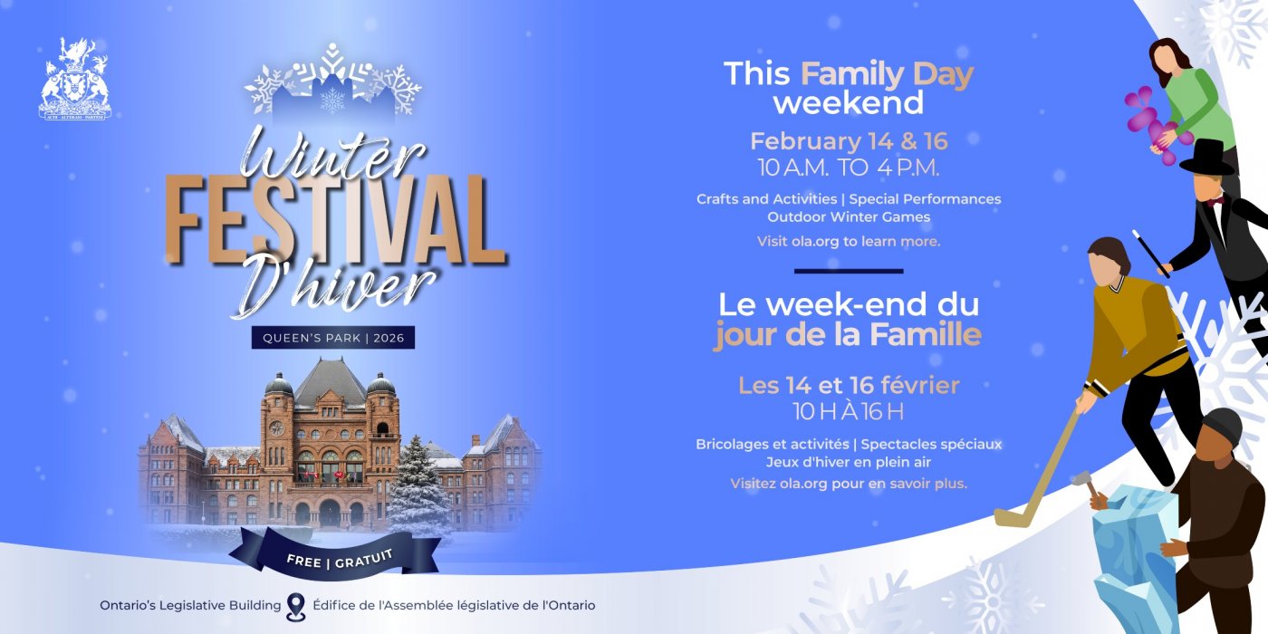 Looking for something fun and free to do this Family Day weekend? Come to the Legislative Assembly of Ontario for hands-on activities, indoor and outdoor experiences, and live entertainment during this year’s Winter Festival!