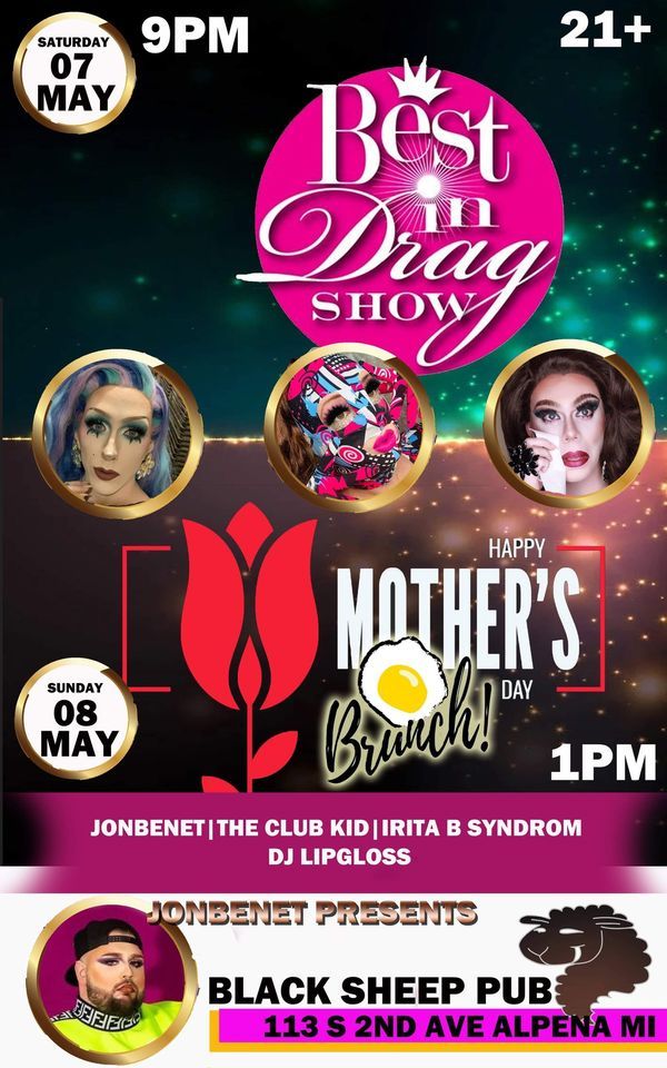 Drag Queens invade The Black Sheep!Saturday show starts 9pm, Sunday show at 1pm. This is a closed event, 21 and older. Tickets go on sale this Thursday. $25 for Saturday and mother's day special $ 20. limited seating!
