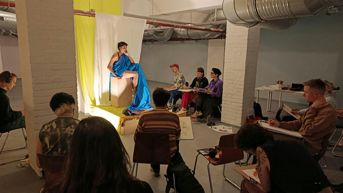 It is a unique life drawing workshop, where with the models we're creating unforgettable experiences, we love to play with outfits, lights and create a 360° immersive experience. We already connected many creative souls together, our community is getting bigger but remains very warm and cosy.
