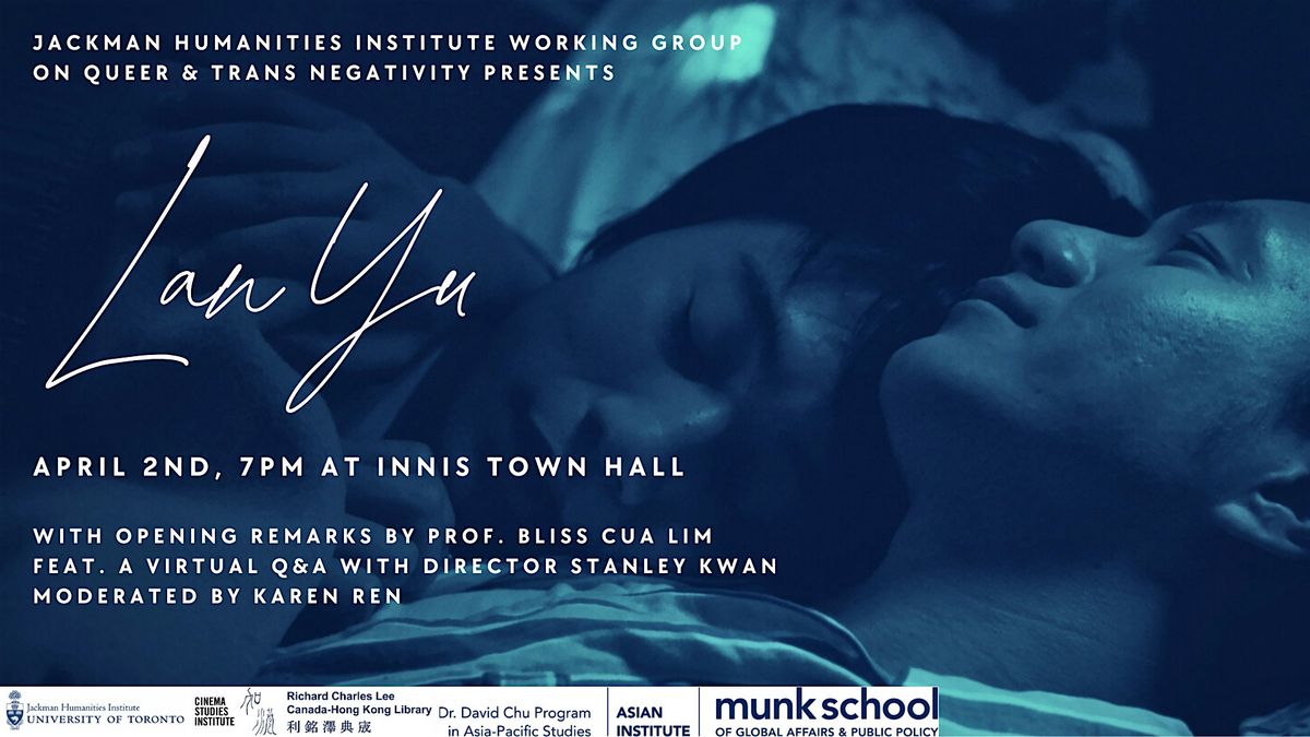 The Jackman Humanities Institute Working Group on Queer & Trans Negativity presents a screening of Lan Yu (2001) directed by Stanley Kwan. The screening will feature opening remarks by Bliss Cua Lim and a virtual Q&A with Stanley Kwan moderated by Karen Ren.