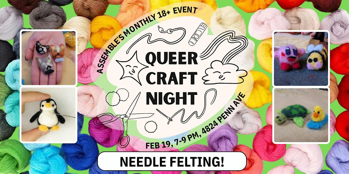 Welcome back to Assemble's monthly 18+ craft event! This month we're learning how to Needle Felt! It's like sculpting with wool! Great for beginners and experienced crafters alike.