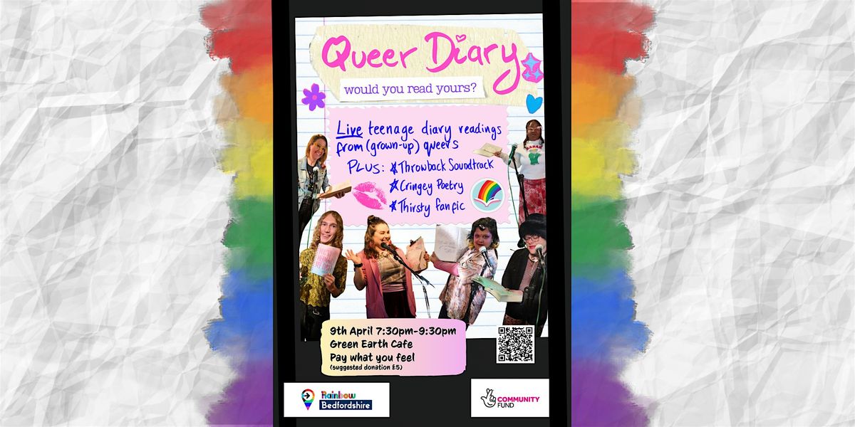 Queer Diary is the night where queers share REAL teenage diaries, plus long-lost love-letters, fabulous fan-fiction, terrible tumblr posts, and the odd bit of cringey poetry 🌈📖 We can't promise to reunite you with your first crush, but we do aim to reignite that rush of adrenaline you got when they first noticed you!