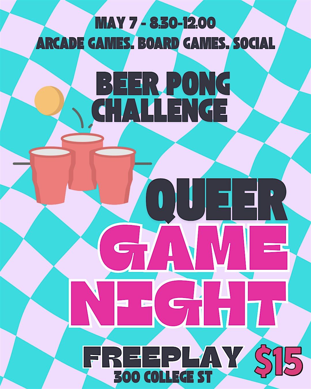 Queer Game Night brings you the ultimate beer pong challenge, sign up to battle in teams or 1on1 all night long! Prizes to be won!