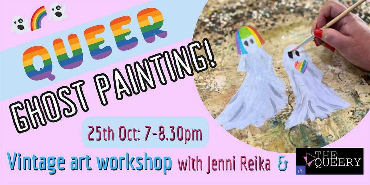 Join acrylics artist Jenni Reika for a fun creative workshop, where we transform vintage artwork by painting in some cute new characters – queer ghosts!👻🌈