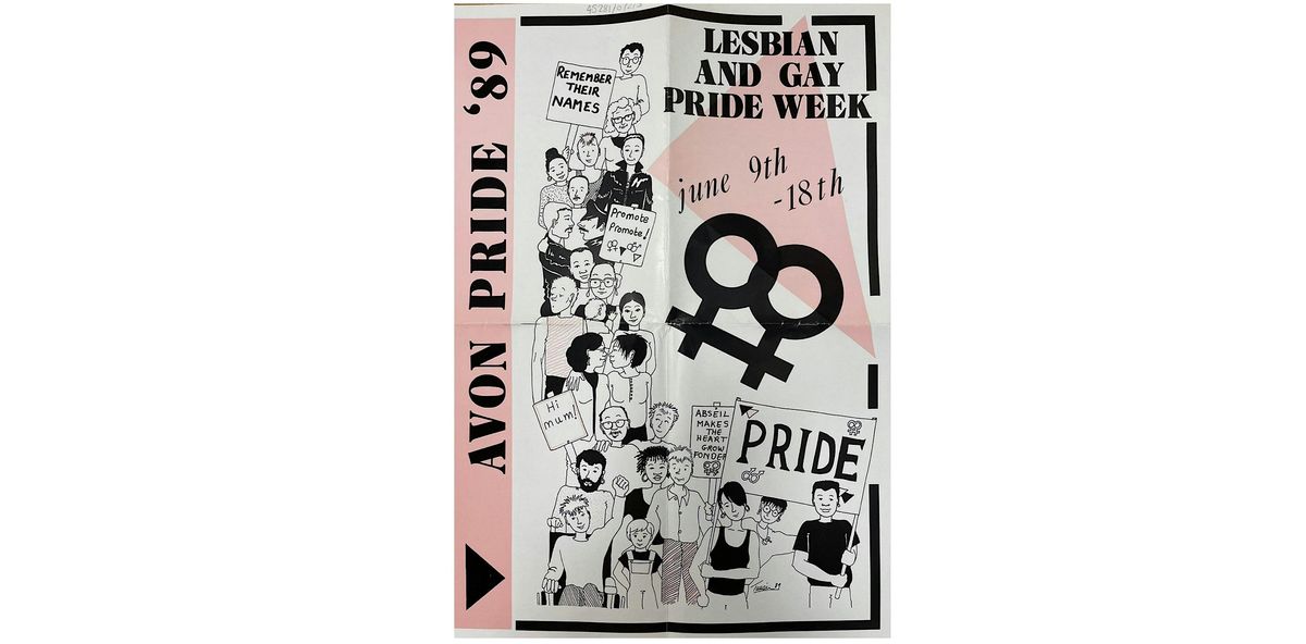 Image: poster for 'Avon Pride' in 1989, a forerunner of the current Bristol Pride.