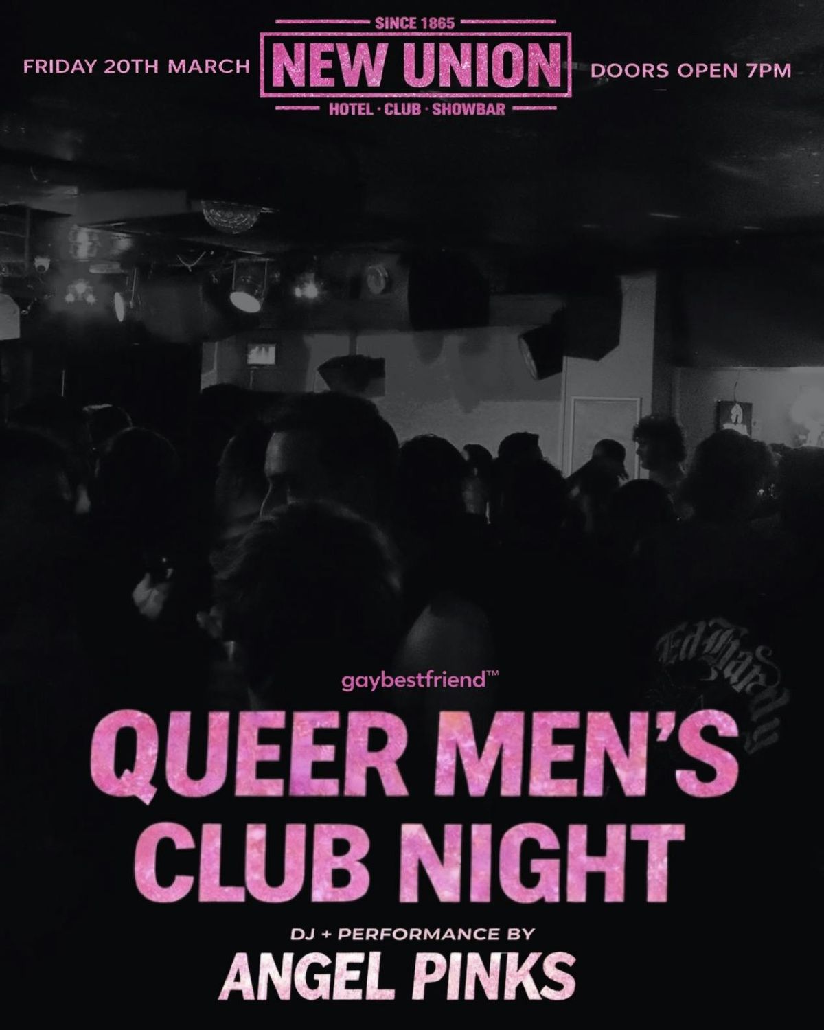 Join us on Friday 20th March at the iconic New Union Hotel in Manchester’s Gay Village for a ticketed club night exclusively for single queer men.