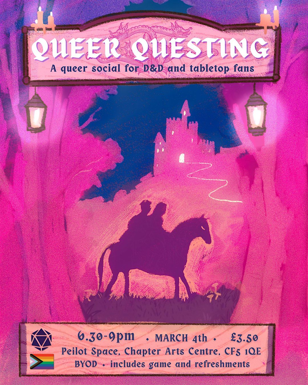 Queer Questing with @loneworlds is a chill and welcoming social event for queer folks who love Dungeons & Dragons and tabletop games.