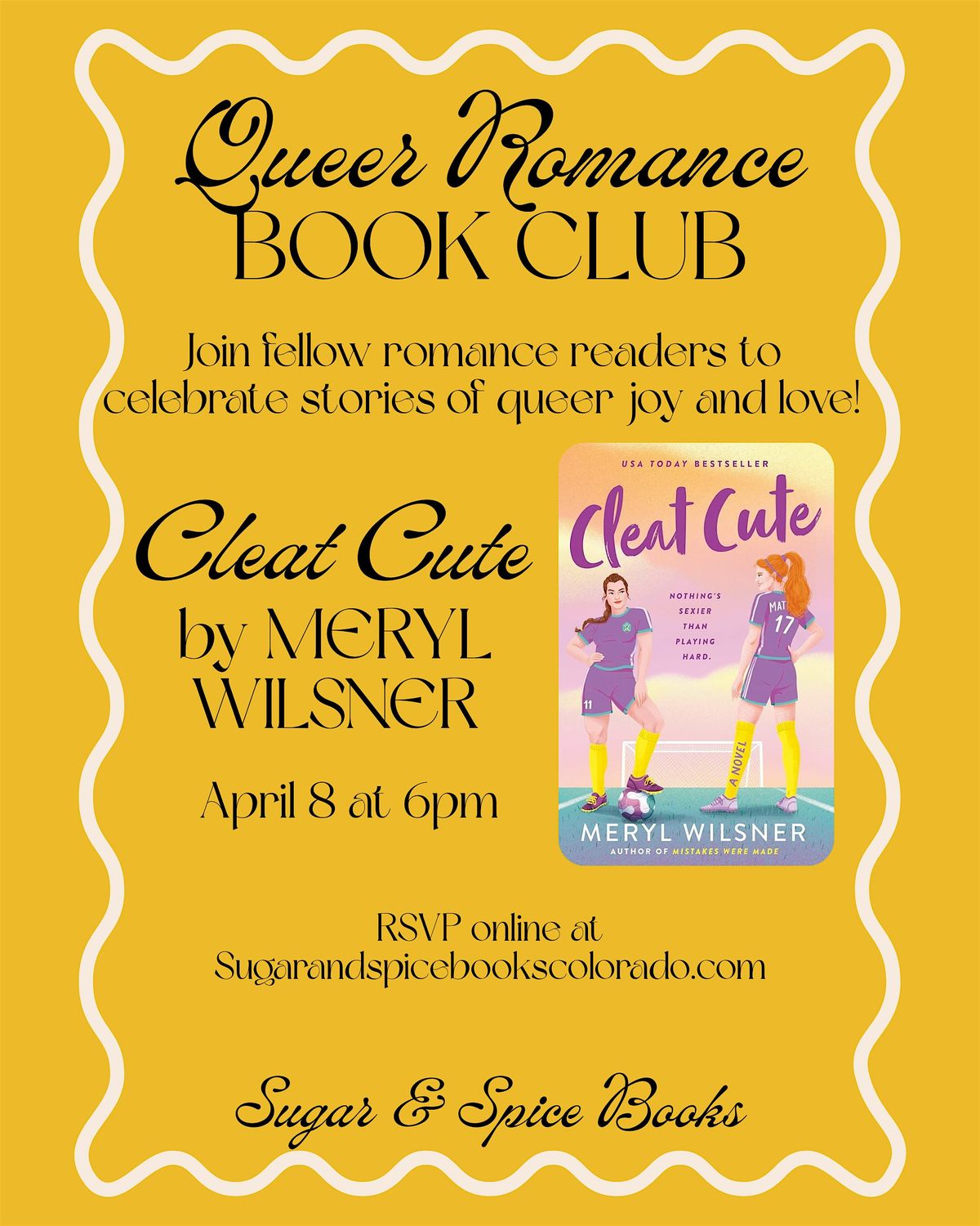 Join fellow romance readers to celebrate stories of queer joy and love! We will be reading and discussing "Cleat Cute" by Meryl Wilsner.