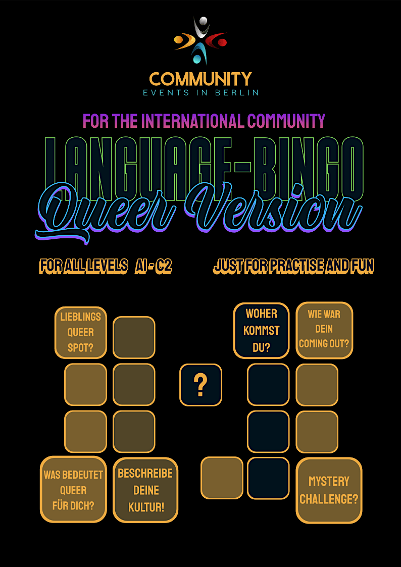 This interactive format brings together people from different linguistic and cultural backgrounds in a playful and engaging way. Through guided conversation rounds, you’ll have the opportunity to connect with new people again and again, discover common interests, and complete your bingo card: