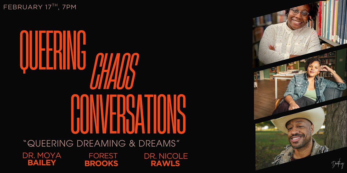 Queering Chaos is a project about Queers who dare to Queer with the Chaos Man at the steering wheel of the American Empire. In our last Queering Chaos Conversation the host and creator of the project, Dr. Nicole Rawls, is in conversation with two Queer artists and friends who she dreams with regularly - Dr. Moya Bailey and Forest Brooks - as a way to show what it means to conjure new worlds through a Black Queer lens.