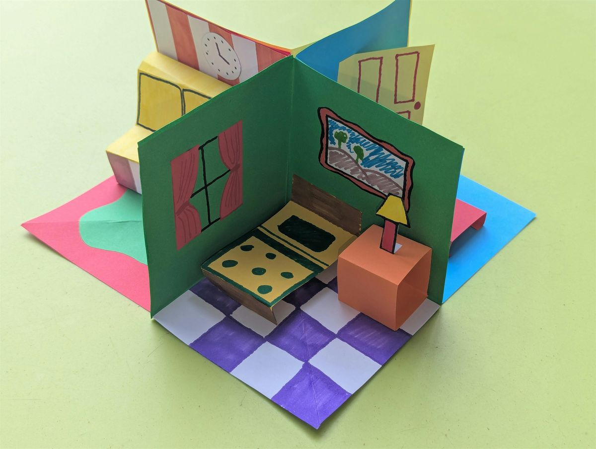 In this 2-hr workshop, young artists will explore what makes a home. Using clever paper folding techniques, textas, scissors and their imagination, create your own four-room folding paper house, then furnish it with paper furniture and all your favourite things!