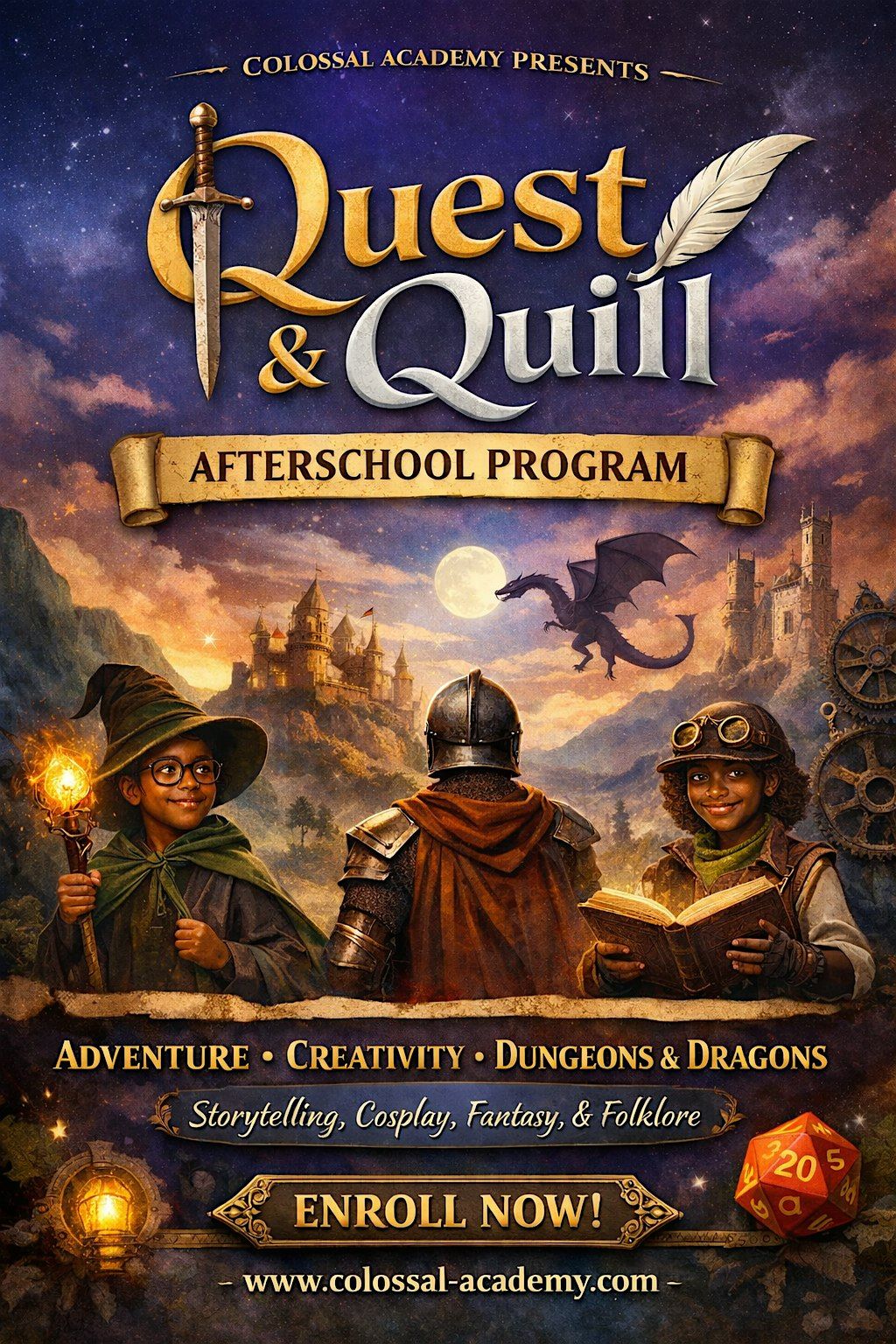 Quest & Quill is an immersive afterschool adventure where storytelling, D&D, creativity, and collaboration come alive.About this Event