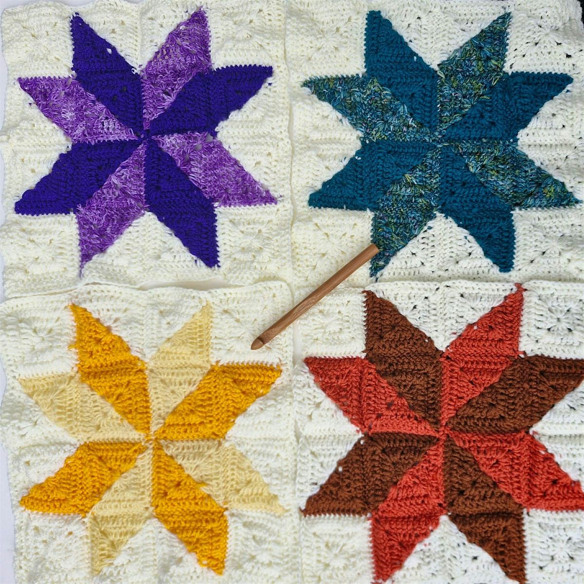 In this crochet workshop you will learn how to crochet some 2-tone squares and then arrange and join them into beautiful quilt block patterns.