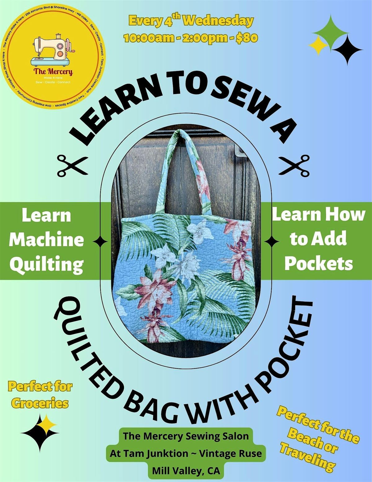 Have you ever wanted how to machine quilt? Well, this is the perfect starter project. Bring in clothing or fabric (like a sheet or towel) to upcycle or purchase some at Vintage Ruse. We will then cut out, machine quilt, add pockts, add handles, and add lining for the perfect tote for any occasion or need.
