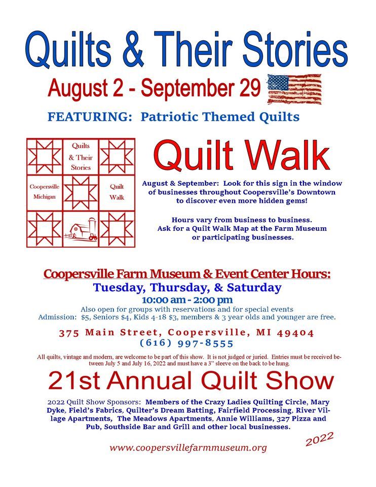 145 quilts are displayed inside the 12,000 square foot facility during August and September. The Director's Choice is Patriotic Themed Quilts. See them and much more.
