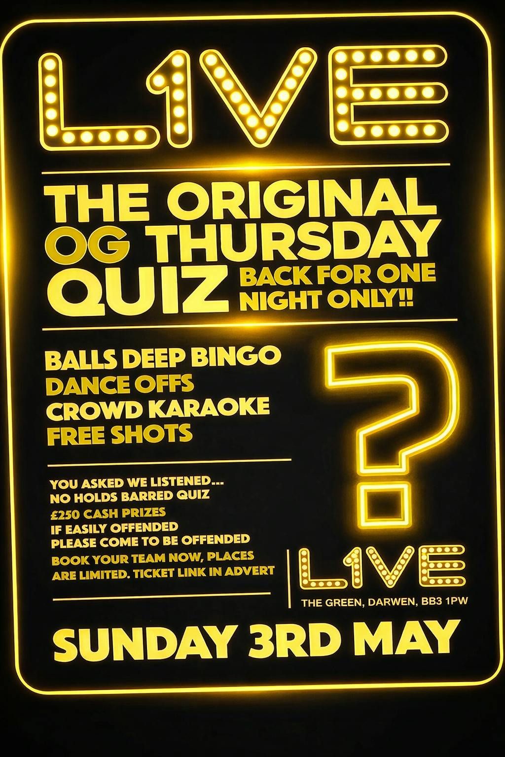 The original no-holds-barred quiz night returns to L1VE for one special night only…