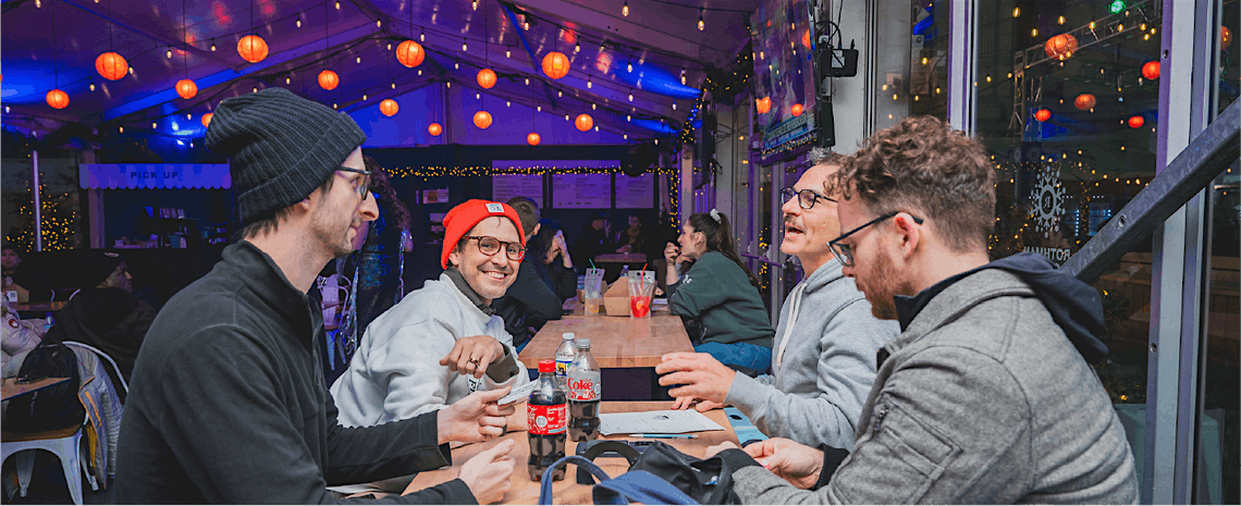 Enjoy happy hour at the Rothman Orthopaedics Cabin. Starting January 8, guests can participate in weekly trivia hosted by Lunch Money Quizzo and win prizes while they sip through February 19.