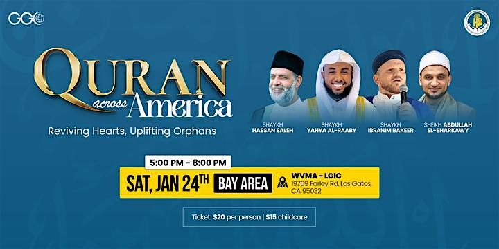 Join us for a special nationwide Qur’an Tour with Shaykh Yahya Raaby, Shaykh Hassan Saleh, Shaykh Ibrahim Bakeer, and Shaykh Abdullah El-Sharkawy for an uplifting evening of Qur’anic recitation, heartfelt reminders, and community connection.