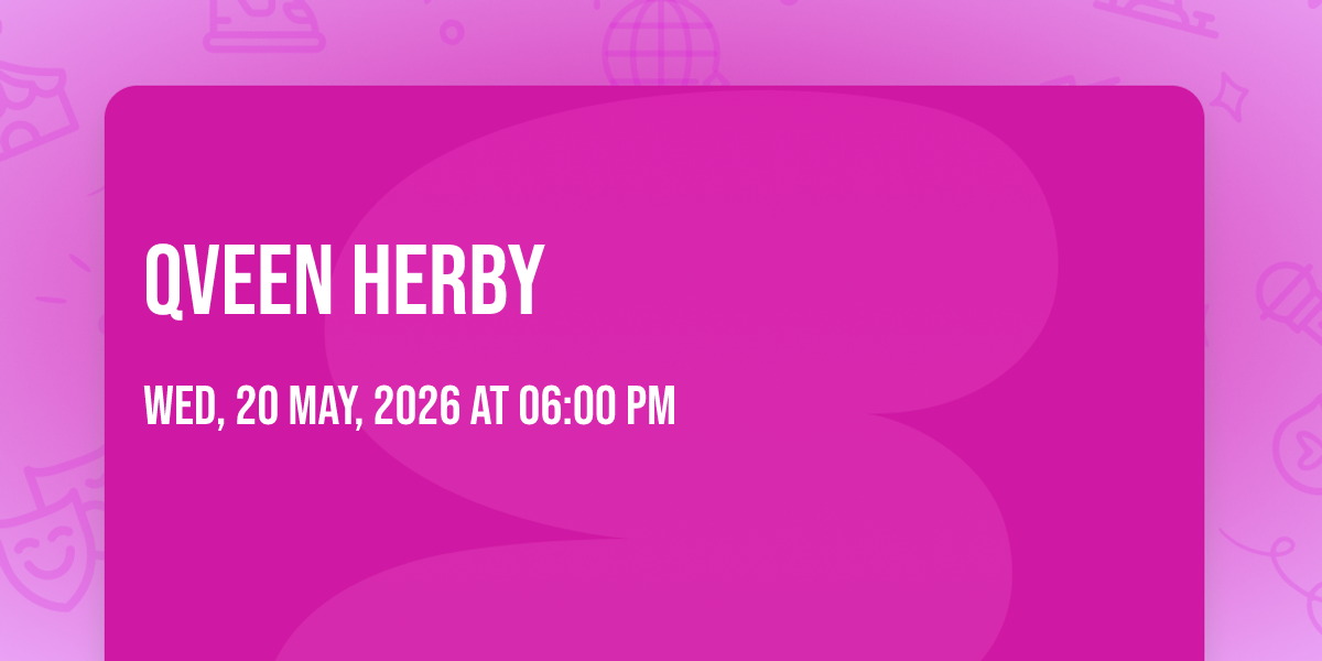 β¨ Enter a world of endless possibilities at Qveen Herby, where every moment tells a story! ποΈ The stunning The Admiral - Omaha in vibrant Omaha, NE transforms into a realm of wonder on May 20th, 2026 at 06:00 PM. π They have crafted an experience that goes beyond the ordinary, combining elements of surprise, delight, and pure entertainment. Every detail has been thoughtfully considered to ensure your journey with us is nothing short of extraordinary. π― Join fellow adventure seekers and memory makers in this celebration of imagination and innovation. π Reserve your spot today and be part of something truly special!http://maps.seatics.com/TheAdmiral-Omaha_GAVIPPremiere_2021-11-10_2021-11-10_0410_11102021_041636_SVGC_tn.png