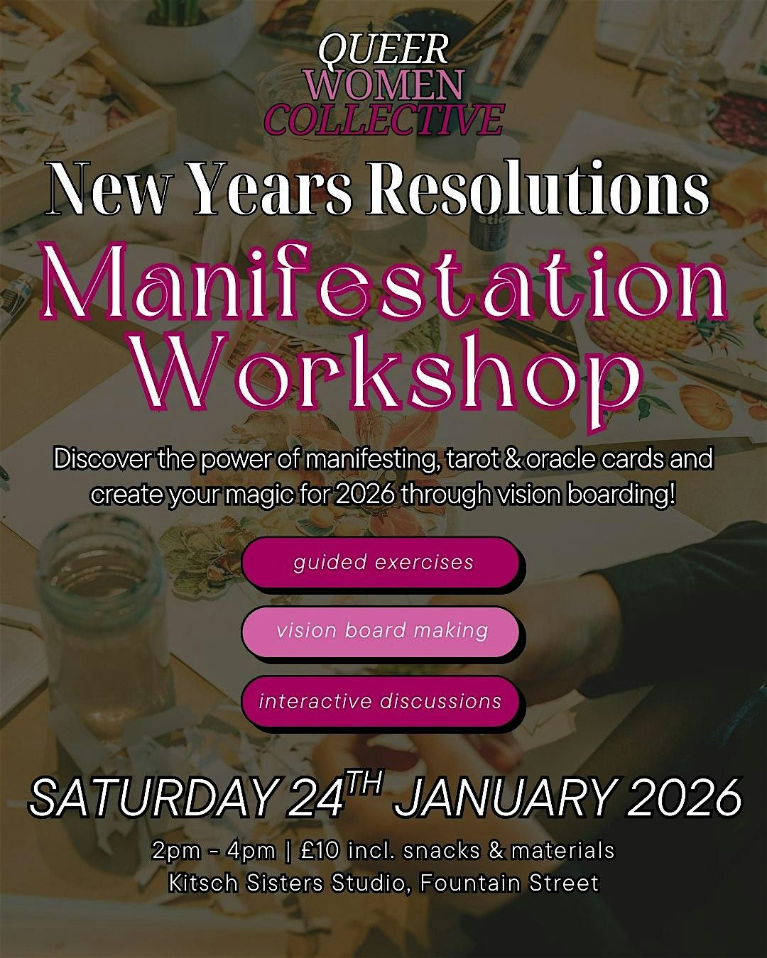 Following a series of successful sold out workshops last year, QWC are back in the new Kitsch Studio penthouse with 2026's New Years Resolutions Manifestation & Vision Boarding workshops!