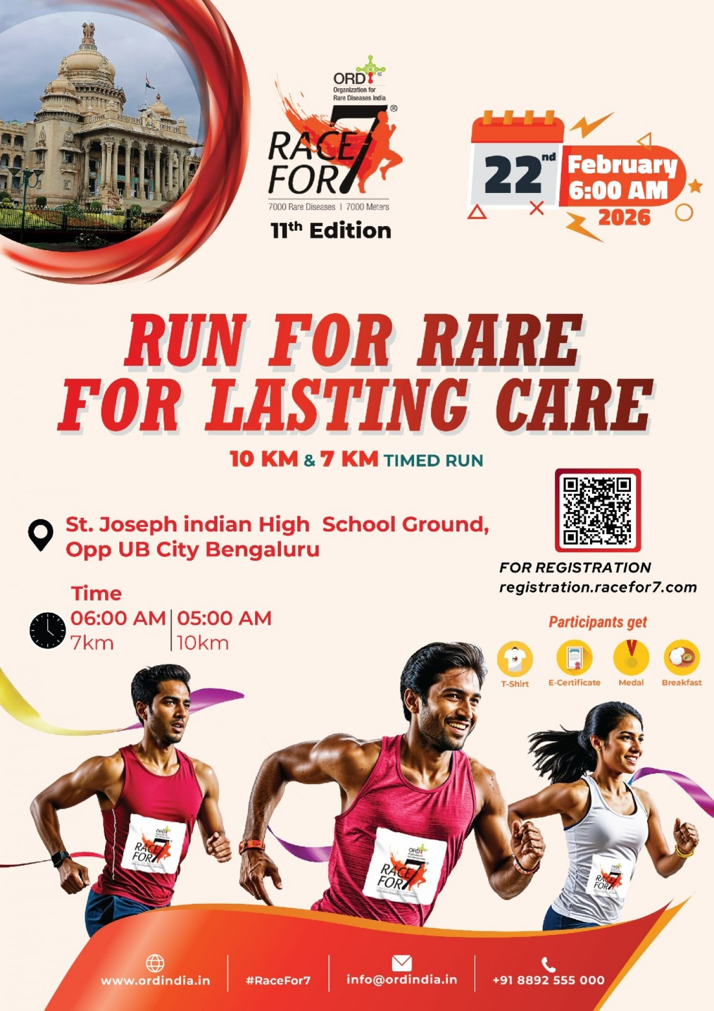 Race for 7: Race for 7 is an awareness run organized by Organization For Rare Disease India (ORDI) – a team committed to address the challenges of rare disease patients and their families in India.