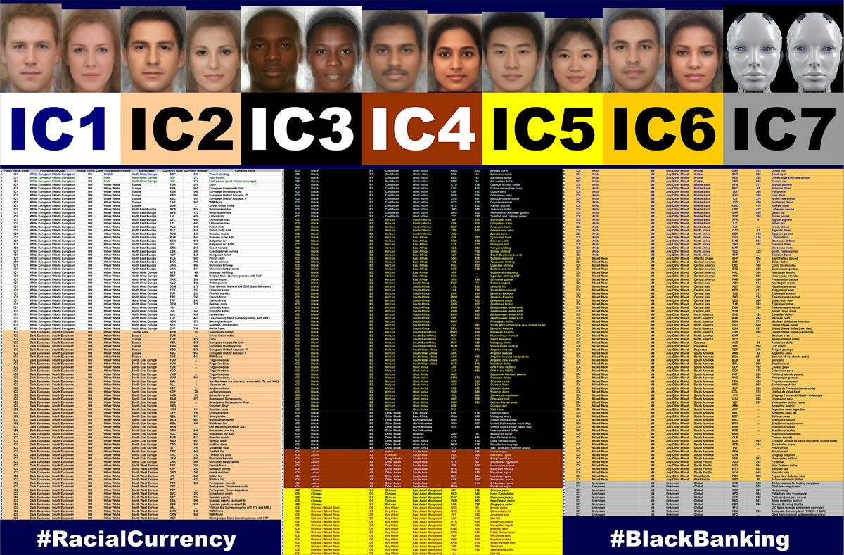 The racialisation of currencies involves categorizing national currencies based on the racial composition of the issuing nation. This categorization uses the UK race and ethnicity codes to highlight how historical and contemporary racial dynamics influence currency values. For instance, the currencies of northern European nations are racialised as IC1, while the currencies of sub-Saharan African nations are racialised as IC3.