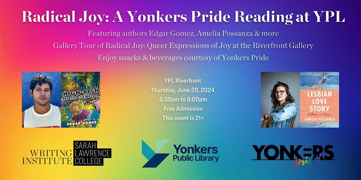 Hosted by the Writing Institute at Sarah Lawrence College, Yonkers Pride & Yonkers Public Library