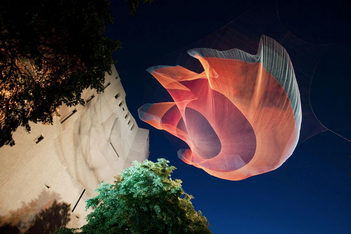 Janet Echelman will discuss her interdisciplinary process of designing immersive sculptures that transform with wind and light. At the scale of buildings, these public artworks integrate unlikely materials ranging from knotted fiber to atomized water particles. Seemingly fragile yet resilient, her sculptures are based on the visualization of data about environmental and geological changes. To develop these complex aerial structures, Echelman draws inspiration from ancient craft, material science, and high-tech fiber engineering.