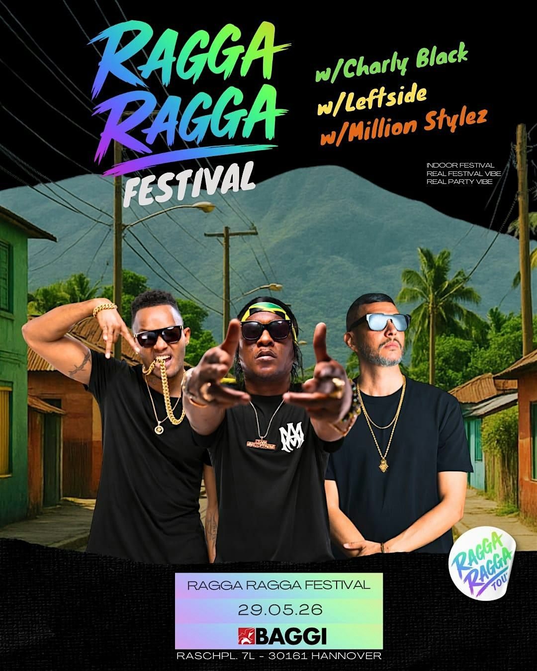 🔥 Dancehall Night im Club Baggi – 29.05.2026 🔥 Am 29. Mai 2026 wird der Club Baggi zur Bühne für eine unvergessliche Dancehall-Night! Freut euch auf eine große Party mit internationalen Künstlern, heißen Beats und einer legendären Atmosphäre. Live on Stage: 🎤 Charly Black mit Hit-Songs wie „Party Animal“ 🎤 Leftside mit Hits wie „Ghetto Gyal Wine“ 🎤 Million Stylez mit seinem bekannten Hit „Miss Fatty“ Special Guest Artists: 🎤 JBQNG 🎤 Singing Gold An den Decks sorgen für die besten Vibes: 🎧 DJ Ali Gee 🎧 DJ King Kenny 🎧DJ Phat Gyal 🎧 DJ Mikedogg ✨ Weitere DJs und Tänzer werden noch angekündigt! Freut euch auf große Live-Performances, echte Dancehall-Vibes und eine Nacht voller Musik, Tanz und Energie. 📅 29.05.2026 📍 Club Baggi Alle sind willkommen – bringt eure Freunde mit und verpasst dieses Event nicht. Diese Nacht wird legendär! 🔥🎶 🔥 Dancehall Night at Club Baggi – 29.05.2026 🔥 On May 29, 2026, Club Baggi will turn into the place to be for all Dancehall and Reggae lovers! Get ready for a massive party with international artists, great vibes and unforgettable performances. Live on Stage: 🎤 Charly Black with hit songs like “Party Animal” 🎤 Leftside with hits like “Ghetto Gyal Wine” 🎤 Million Stylez with his famous hit “Miss Fatty” Special Guest Artists: 🎤 JBQNG 🎤 Singing Gold On the decks bringing the vibes: 🎧 DJ Ali Gee 🎧 DJ King Kenny 🎧 DJ Mikedogg ✨ More DJs and dancers will be added soon! Get ready for amazing live performances, real Dancehall energy and a massive party you will never forget. 📅 29.05.2026 📍 Club Baggi Everyone is welcome – bring your friends and don’t miss this event. This night will be legendary! 🔥🎶