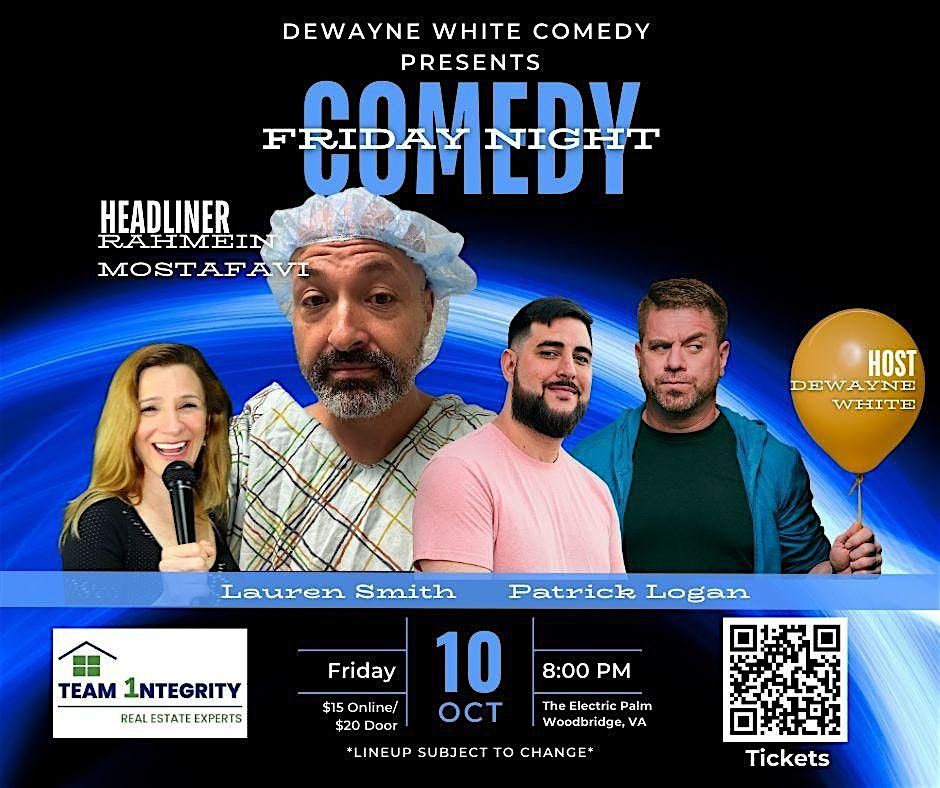 Rahmein Mostafavi (Headliner): Rahmein Mostafavi charms crowds with comic timing and charisma developed throughout two decades of live performance. He addresses social and political topics with a combination of satirical and observational comedy, leaving audiences with a greater sense of purpose, sex appeal and the occasional leg cramp.