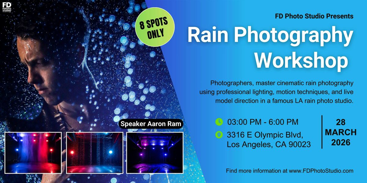 Join us for a 3-hour Rain Photography Workshop at FD Photo Studio in Los Angeles. Only 8 spots are available.