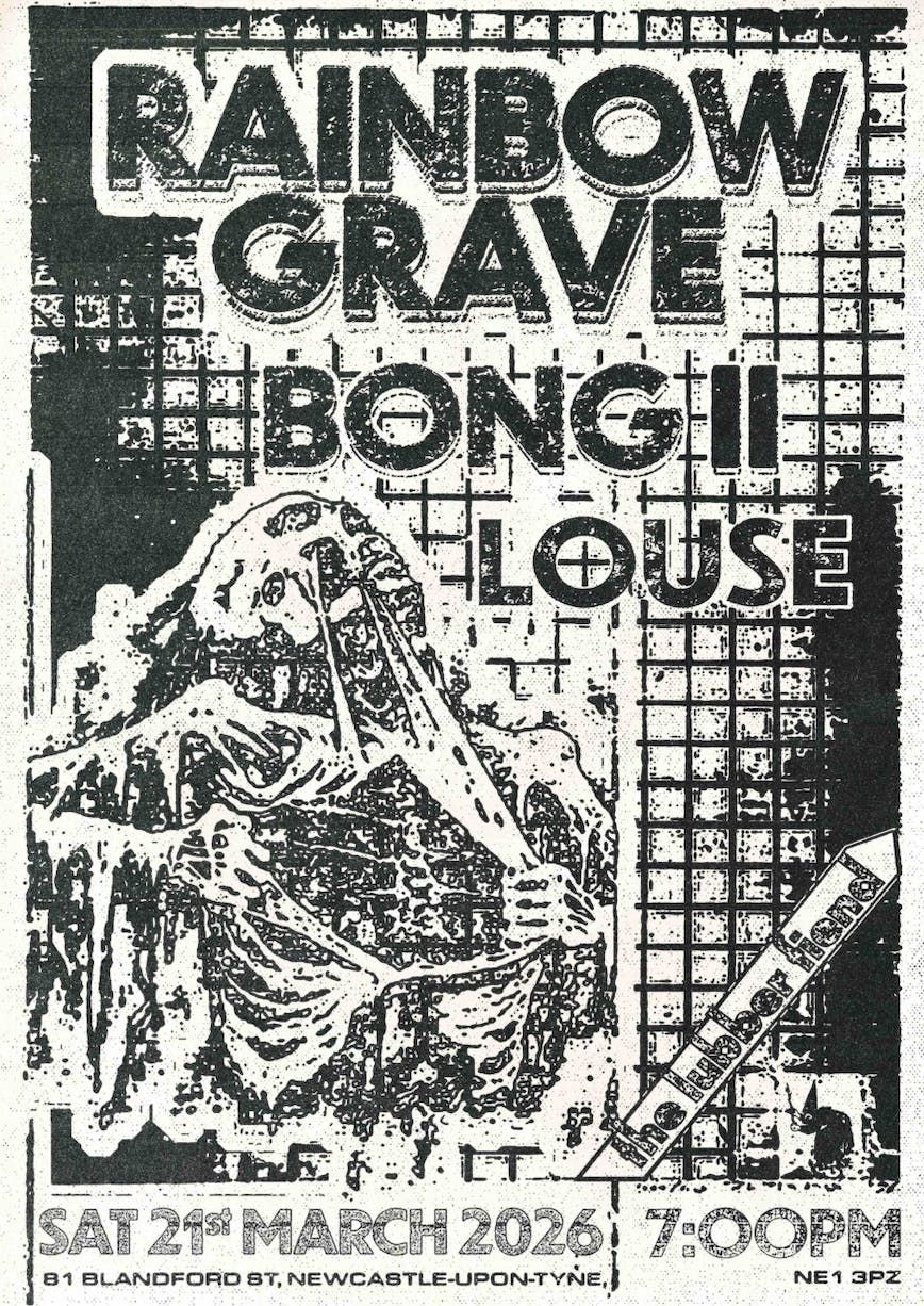 Been trying to get Rainbow Grave to play since we opened - nasty and bleak noise/psych/punkBirmingham based Rainbow Grave channel the blank despair of negative punk through layers of distorted psychedelic damage: dirty guitars, freeform pedal abuse and effected vocals coagulate around cyclic bass and drum rhythms in repetitive and minimal structures.