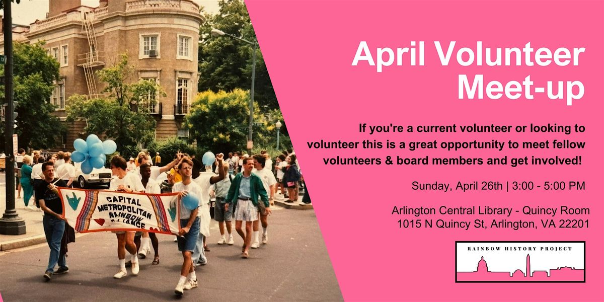 Join the Rainbow History Project, a volunteer-run nonprofit dedicated to promoting, collecting, and preserving LGBT+ history in the Washington DC for our April Volunteer Meeting! Learn about ongoing opporotunities and meet other volunteers.