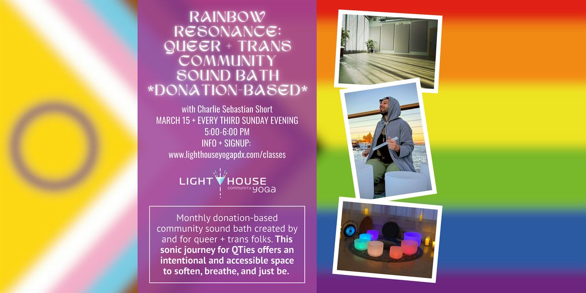 RAINBOW RESONANCE: QUEER + TRANS COMMUNITY SOUND BATH *DONATION-BASED* with Charlie Sebastian Short @charliesoundpractice @ Lighthouse Community Yoga PDX / MARCH 15 + EVERY THIRD SUNDAY EVENING / 5:00-6:00 PM