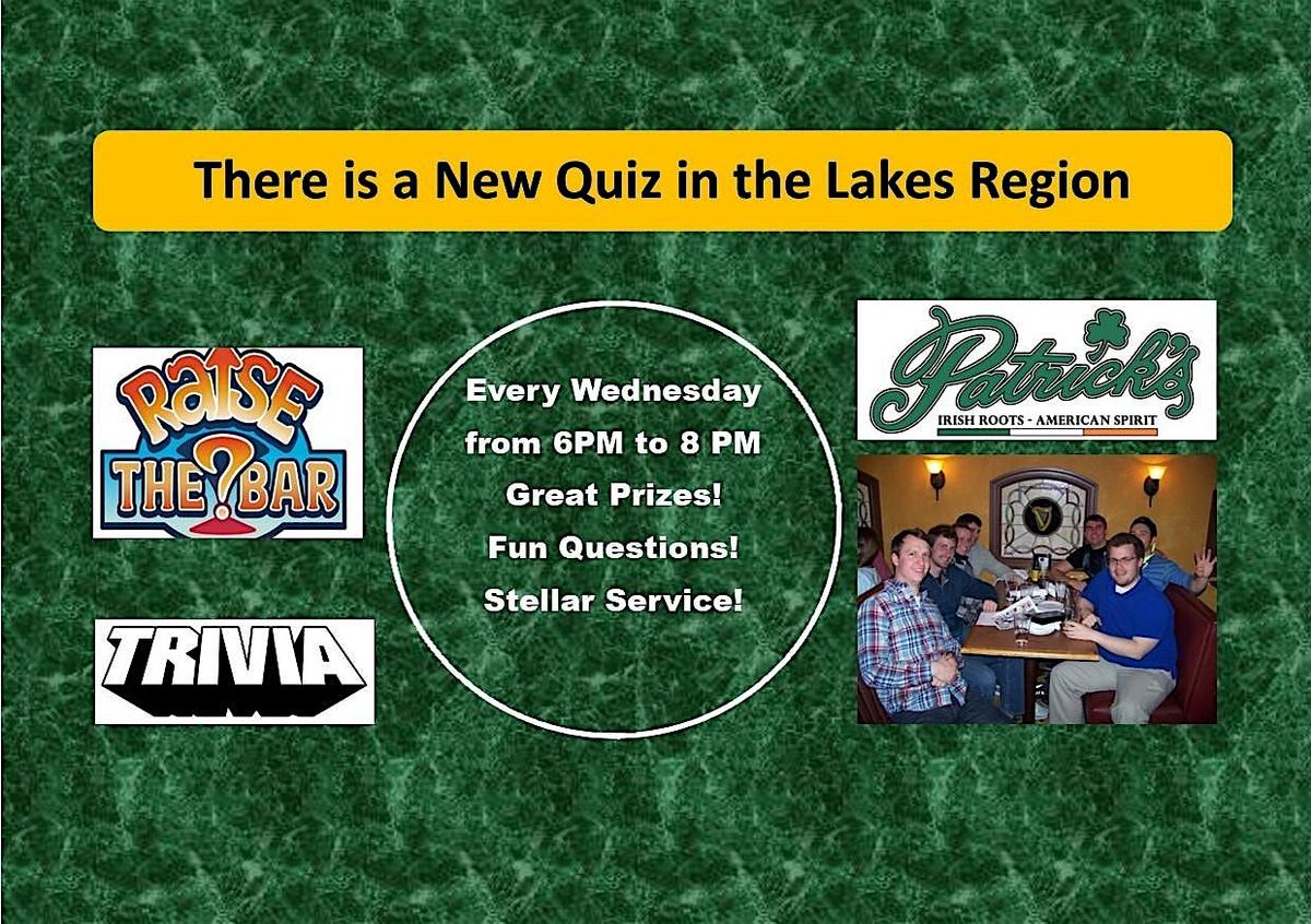 Raise the Bar Trivia Wednesday Nights at 6p at Patrick's Pub in Gilford