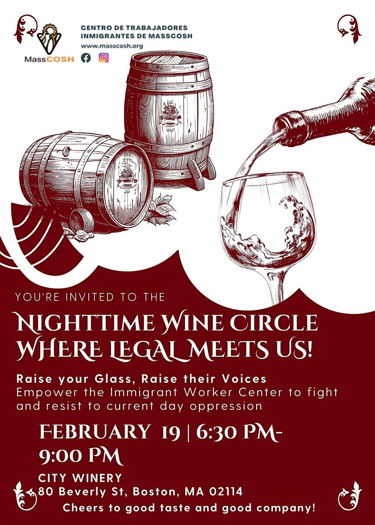 Join us on February 19 from 6:30 PM to 9:00 PM at City Winery (80 Beverly St, Boston, MA 02114) for an unforgettable evening of wine, community, and empowerment.