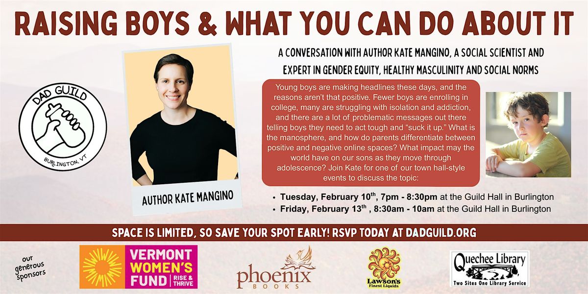 Young boys are making headlines these days, and the reasons aren’t that positive. Fewer boys are enrolling in college, many are struggling with isolation and addiction, and there are a lot of problematic messages out there telling boys they need to act tough and “suck it up.” Many parents worry about what impact the world may have on their sons as they move through adolescence. Join Kate for one of our town hall-style events to discuss the topic.