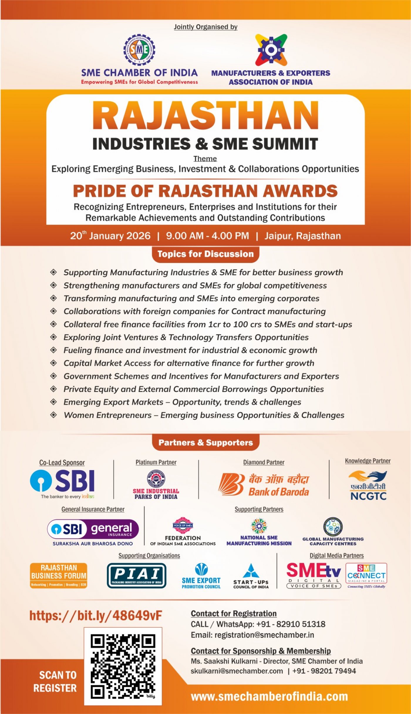 This summit will bring together industry leaders, policymakers, financial institutions, innovators, and entrepreneurs to shape the future of SMEs in Rajasthan and beyond.