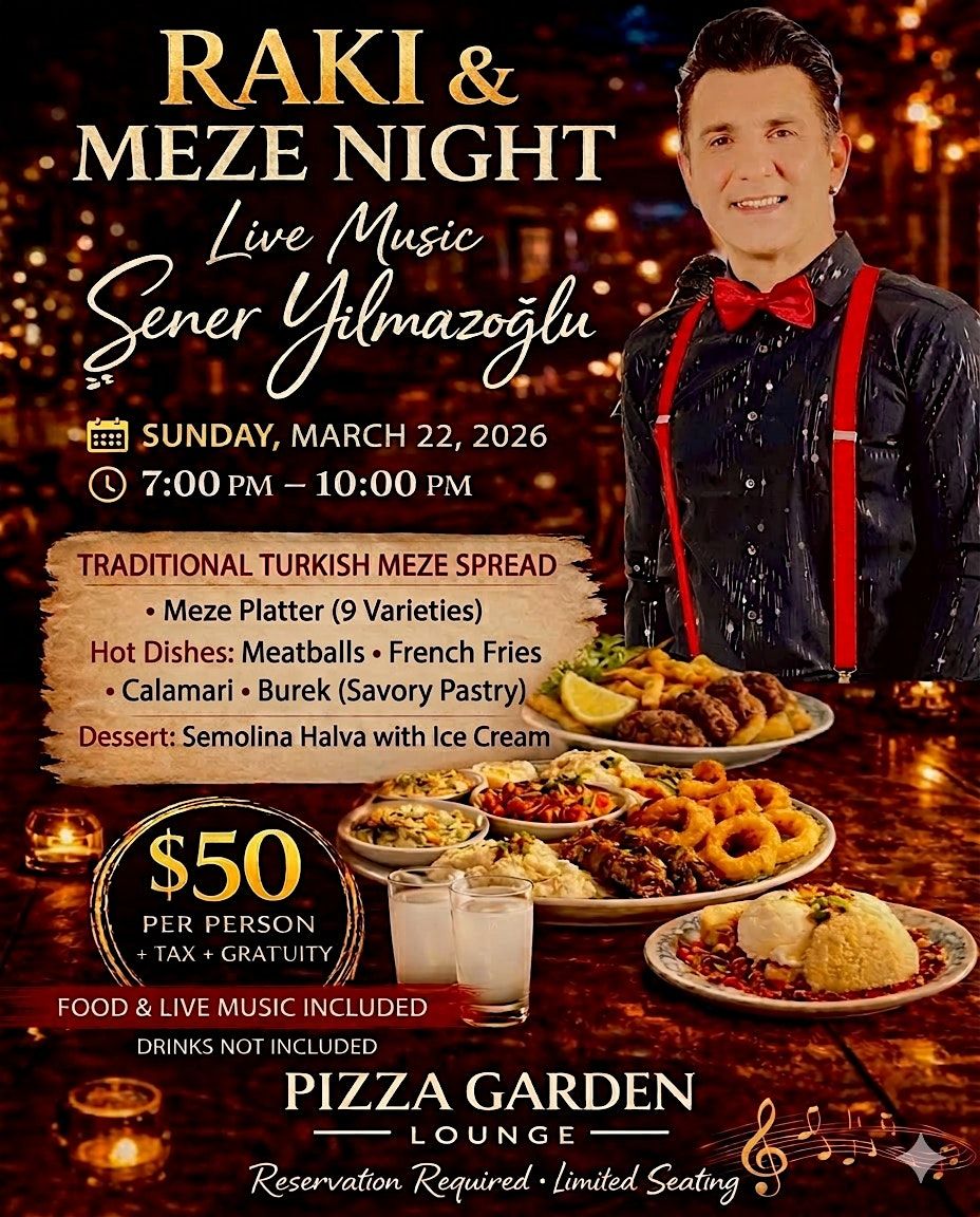 Join us at Pizza Garden Lounge in Langley for a special Rakı & Meze Night celebrating the last day of Eid with delicious Turkish food, live music and a lively atmosphere.