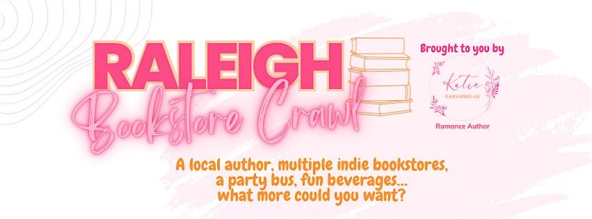 Join new book friends for a fun in-person adventure exploring some of Rolesville, Wake Forest, and Raleigh’s coolest indie bookstores! Meet Katie Karambelas, a local romance author, as you ride to multiple indie bookstores in the area in style on a 25-person party bus. Whether you're looking for new bookworm friends or just looking for a fun day visiting bookstores and drinking coffee and wine, this bookstore crawl is the PERFECT way to spend a Saturday. Don't miss out on this epic day of bookish fun!