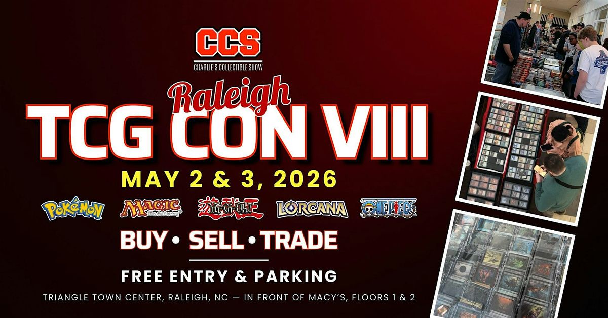 CCS returns fors Raleigh for TCG Con VIII, bringing another full weekend dedicated to the hobby that connects us all. From serious collectors to first-time traders, this is where binders open, deals are made, and the community comes together strong.